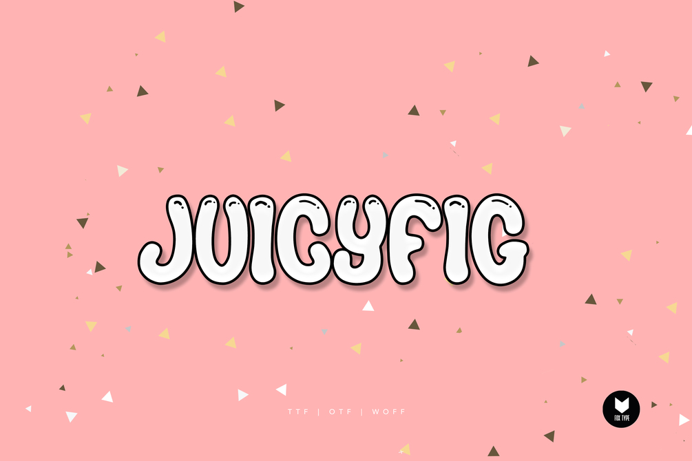 Juicyfig is a fun, bubbly font that is perfect for headlines and more! This playful cute font is a great way to give your designs a relaxed and playful vibe; It will elevate a wide range of crafting ideas, from cards, to branding, labels and much more.