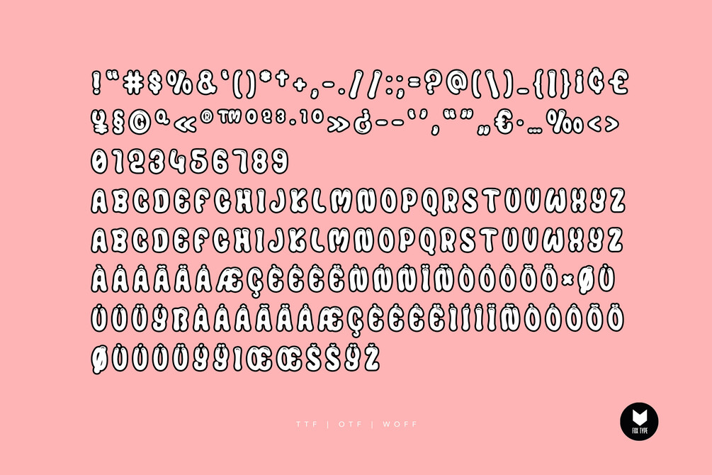 TTF, OTF, SVG, WOFF, WOFF2, Documentation Included.